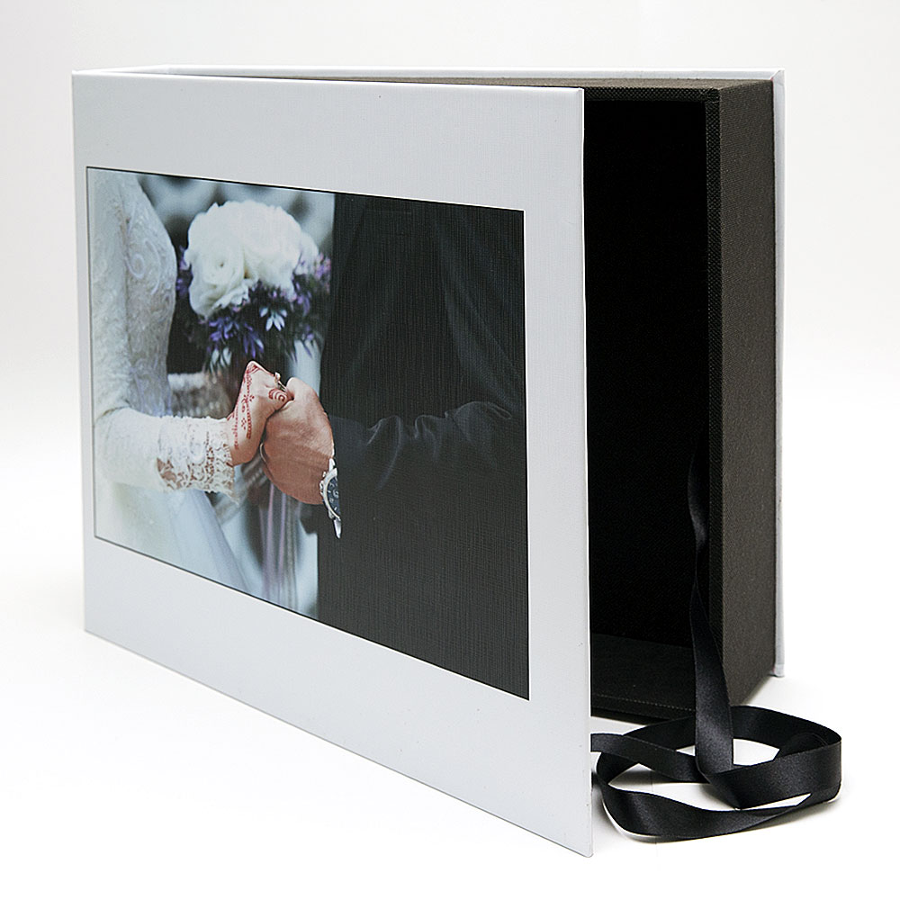 Magazin Kutu ürünümüz, istenilen görsel kaplama uygulanarak hazırlanır. Albüm kapağı ile aynı yada farklı tasarım kullanılabilir. Albümünüzün sunumu ve saklamasına şıklık ve kolaylık sağlar.